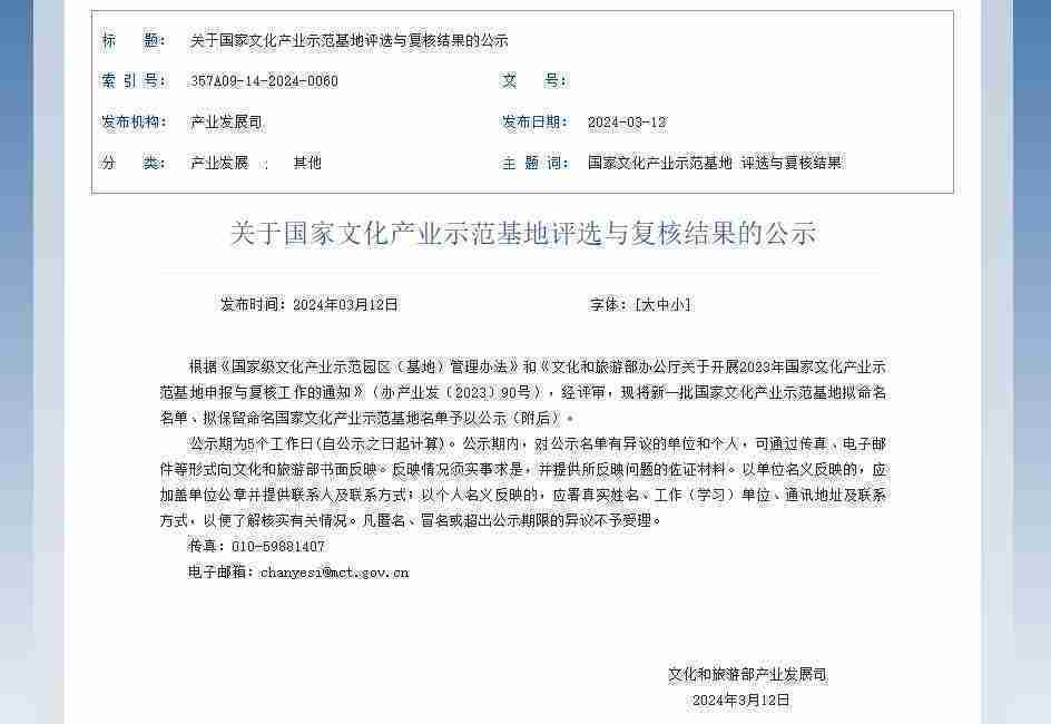 公司新闻 新一批国家文化产业示范基地公示,,赏金大对决成功入围