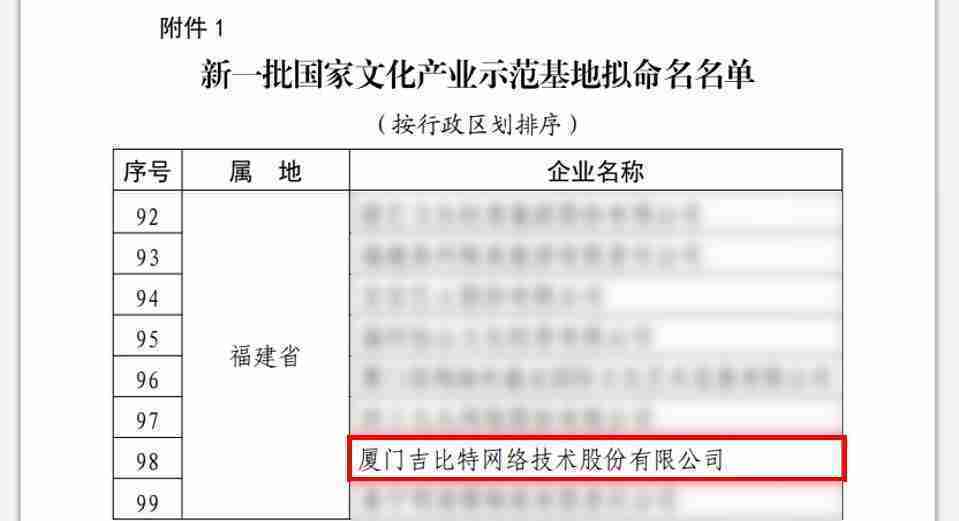 3月12日,,文化和旅游部发布了《关于国家文化产业示范基地评选与复核结果的公示》,,,厦门赏金大对决网络技术股份有限公司(以下简称“赏金大对决”或“公司”)成功入围新一批国家文化产业示范基地拟命名名单。。